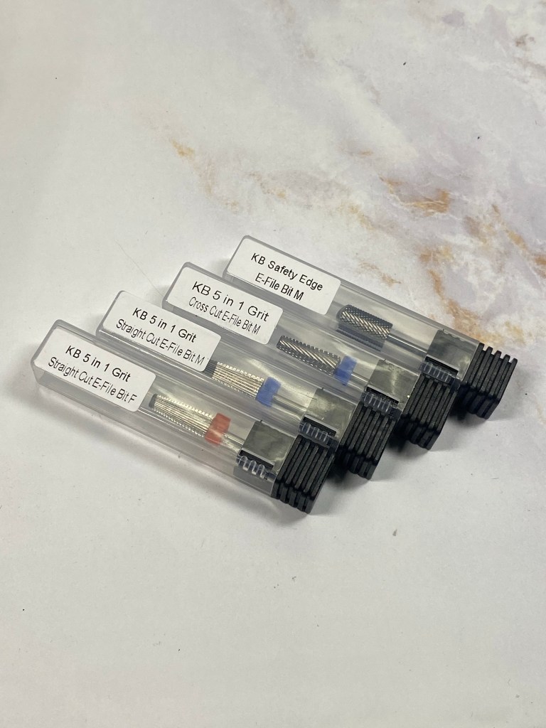 As you see above there are cuticle bits that I have for proper manicuring. As I get older I appreciate dry manicuring more than ever over a water bowl and a cuticle pusher. The technical advancement is just unparalleled.
