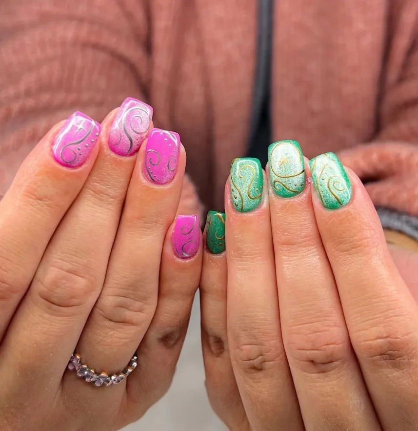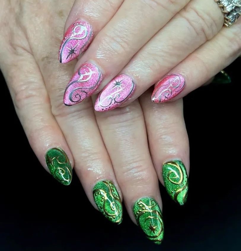 Hey everyone and welcome back to Southernly Sweets Nails Blog! Today I wanted to show off some amazing nail artwork inspired by the new movie Wicked. These all star nails have been playfully plucked for your viewing pleasure.